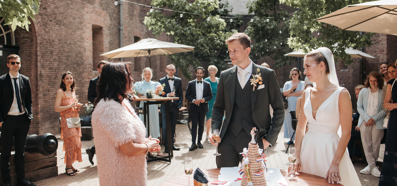 We couldn’t be happier with Hotel Arsenaal as our wedding venue. We celebrated everything here—our reception, dinner, and party, followed by breakfast with all our guests the next morning. Everyone stayed at the hotel, which made the whole experience very special.